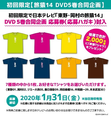 ≪抽選で合計2,000名様に『旅猿Tシャツ』をプレゼント!!(応募券、応募ハガキ封入)≫