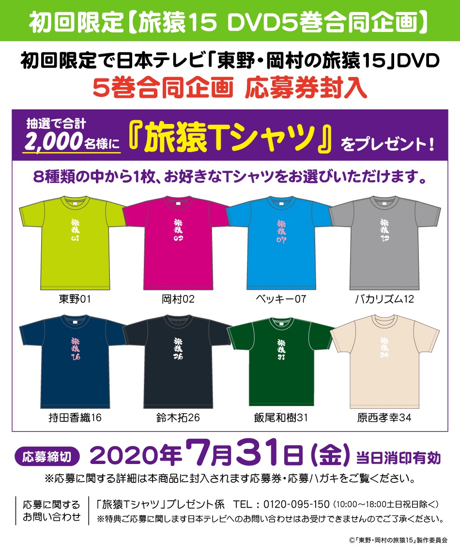 初回限定で日本テレビ「東野・岡村の旅猿15」DVD5巻合同企画 応募券封入