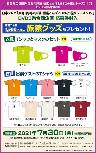 ★初回限定【東野・岡村の旅猿 極楽とんぼとBBQの旅&シーズン17 DVD5巻合同企画】★