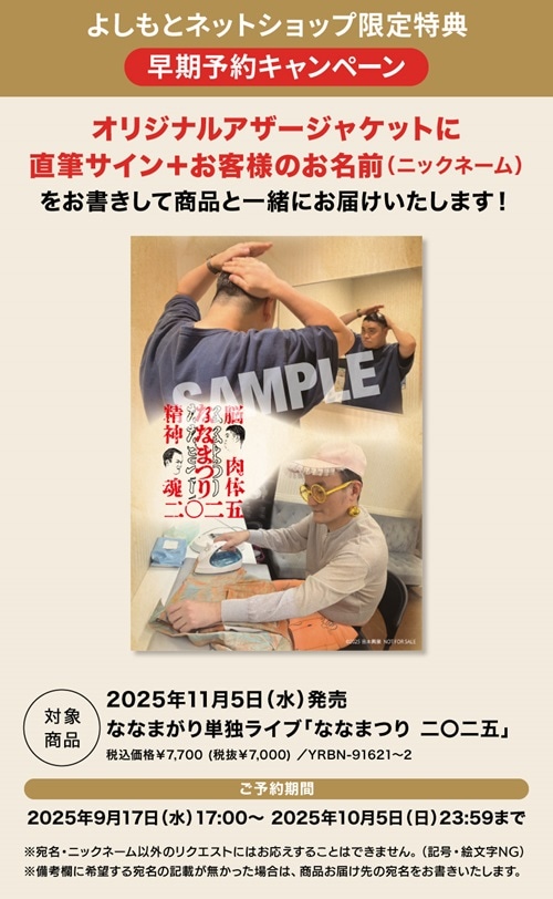 オリジナルアザージャケットにななまがり直筆サイン+お客様のお名前(ニックネーム可)をお書きして、DVD1点ご予約(ご購入)につき1点商品と一緒にお届け致します。